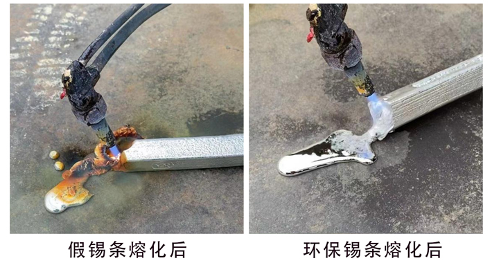 假錫條它主要是是由鋅、鉀、銻、鐵、鎘等幾種金屬用特殊方法做出來的混合品,這種合金條做出來后的外觀和無鉛焊錫條幾乎一致,外觀都為銀白色的金屬,如果沒有豐富的經驗,僅用肉眼是非常難以分辨的。下面我們總結幾種方法幫助大家分辨假錫: